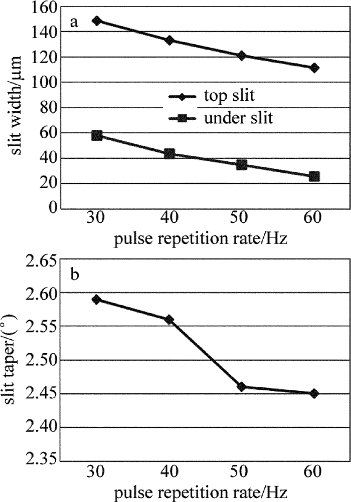Figure 7.  Slit width and taper curve with pulse repetition rate